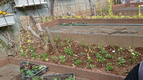 第4区画ももう草が少し生え始めていますので、草取りをしてから植え付けになります。植え付けたノースポールはとても元気な苗ですから、すぐに根を張って生長して3月中頃にはお花を付けてくれると思います。